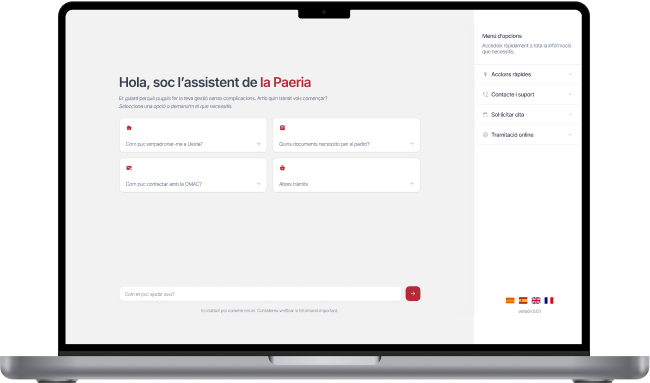 Amb l’objectiu de millorar l’eficiència i l’accessibilitat dels serveis municipals, l’Ajuntament de Lleida ha posat en marxa l’Assistent de tràmits de la Paeria, un xatbot intel·ligent amb tecnologia d’intel·ligència artificial.