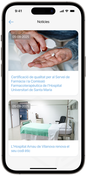 El redisseny de l'aplicació n'ha millorat la interfície, fent-la més moderna i fàcil d'utilitzar. La navegació ara és més intuïtiva, amb menús clars i funcions agrupades. S'han afegit opcions com la missatgeria en temps real i les videotrucades per a consultes virtuals. També s'han inclòs ajustos d'accesibilitat, com el mode fosc i la mida de la lletra ajustable, per assegurar que tots els usuaris puguin utilitzar l'app de manera còmoda i efectiva.